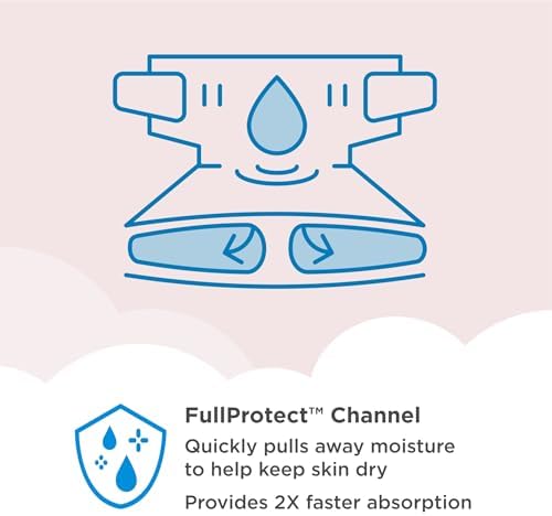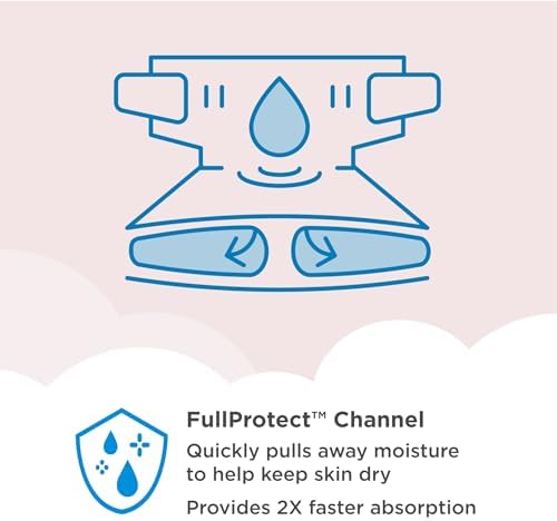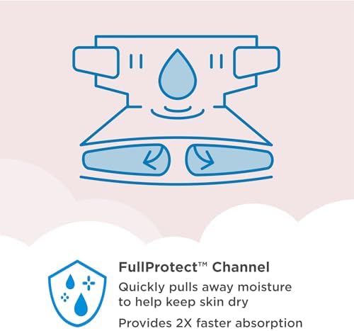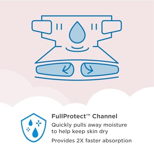 - FullProtectTM Channel dryness technology quickly pulls away moisture to help keep baby dry with up to 12 hours of leak protection