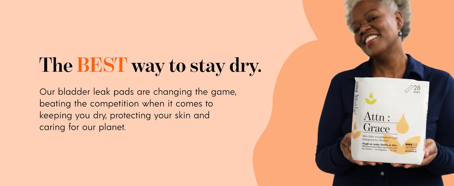 - Designed by Women, for Women: Attn: Grace is dedicated to supporting women managing bladder leaks, whatever your stage of life, with thoughtfully crafted personal care. Whether you need extra-heavy protection, postpartum protection, discreet bladder leak pads, or breathable incontinence solutions, our plant-based products provide comfort, confidence, and care tailored to your needs.