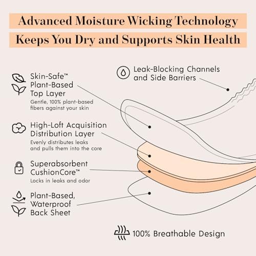 - Plant-based for sensitive skin: Made with renewable, plant-based materials, these feminine pads for bladder leakage are free from dyes, chlorine, bleach, lotions, latex, and synthetic fragrances. They offer breathable, irritation-free comfort—perfect for those seeking a natural, thin incontinence solution.