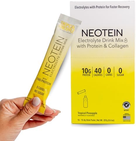 - ELECTROLYTE DRINK MIX + PROTEIN POWDER: Formulated with essential electrolytes for rapid hydration, each Neotein packet also delivers 10g of protein. Plus collagen to support bone and joint health. With just 40 calories, Neotein provides a light yet effective way to replenish without weighing you down.