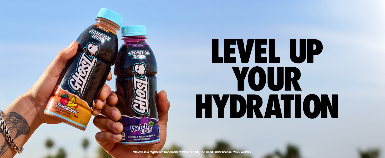 - Hydration is Back & Better: GHOST Hydration is the fully transparent, fully loaded, original hydration drink we’ve all been waiting for, now with a lighter, more chuggable flavor. Bursting with notes of Concord grape, the refreshing flavor of Welch’s “Grape” will transport you back to your juicebox days. Authentic Flavors. Electrolytes. Zero Sugars.* 12-pack. *GHOST Hydration is low in calories.