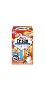 INABA Churu Bites for Dogs, 20 Tubes, Chicken/Cheese Recipe Variety