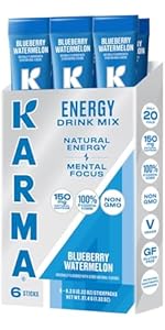 - Karma Energy Drink with Green Tea Caffeine – 150mg of clean, plant-based caffeine for sustained energy without jitters