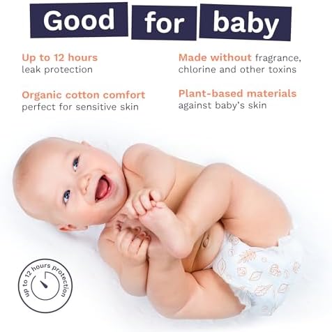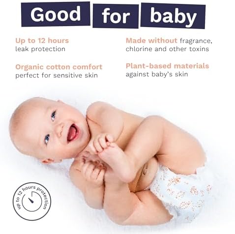 - GOOD FOR BABIES: Totally Chlorine Free (TCF) Super soft & comfy, our diapers are enhanced with organic cotton, perfect for delicate newborn skin. With only plant-based materials against your baby’s bottom, our dermatologically tested, allergy-certified diapers are made without fragrance, chlorine bleaching, lotion, parabens, natural rubber latex & phthalates.