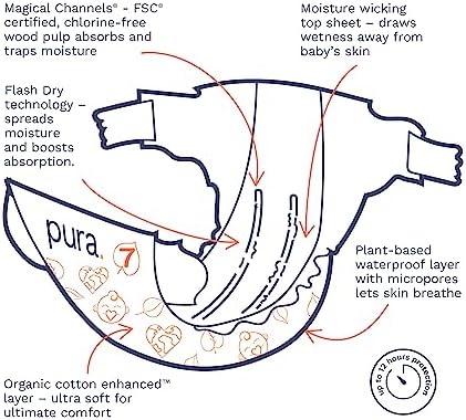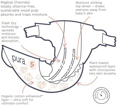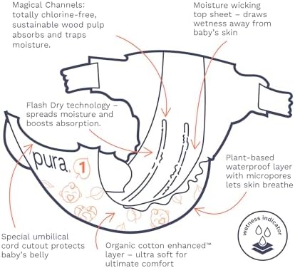 - GOOD FOR THE PLANET: Pura’s diapers are manufactured in a carbon neutral plant, powered by green electricity. Where possible, we’ve replaced non-sustainable materials with lower impact materials such as wood pulp from sustainably managed forests in the absorbent core of our diapers. Our packaging is made from paper, so it's easier to recycle!
